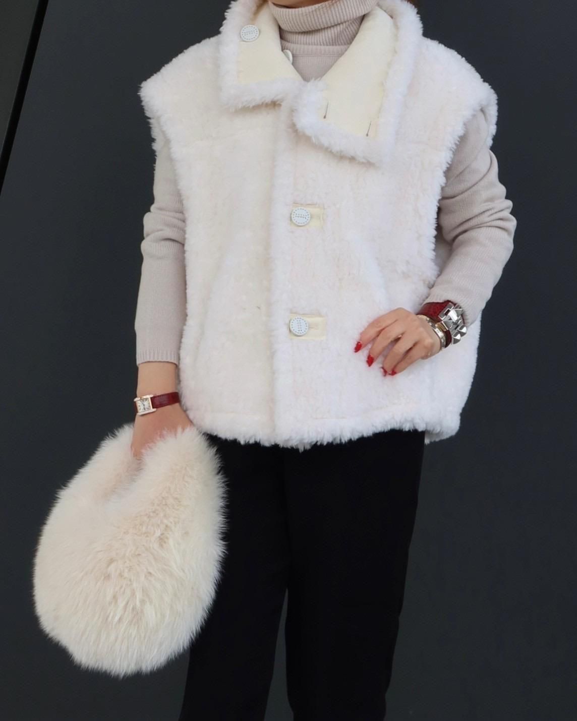 【即納品】ウールファーリバーショートベスト